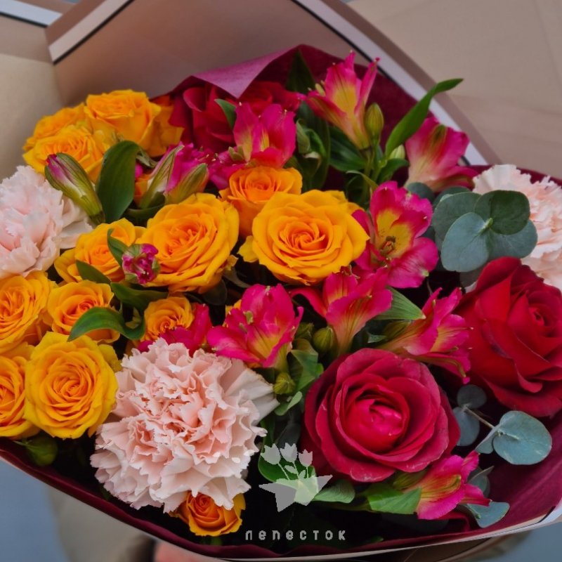 17.06.2023Спасибо большое за прекрасный букет, именинница была в восторге! Все очень организовано: помощь при выборе букета, оформление и доставка. Фото букета присылают на почту до его отправления по указанному адресу. Еще раз спасибо!